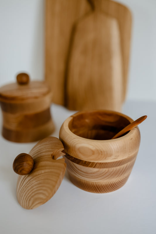 IZPĀRDOTSCukura/sāls trauks, dizains ar rokturīti