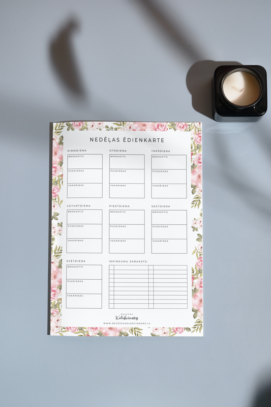Nedēļas ēdienkartes plānotājs 50 nedēļām "Peonijas"