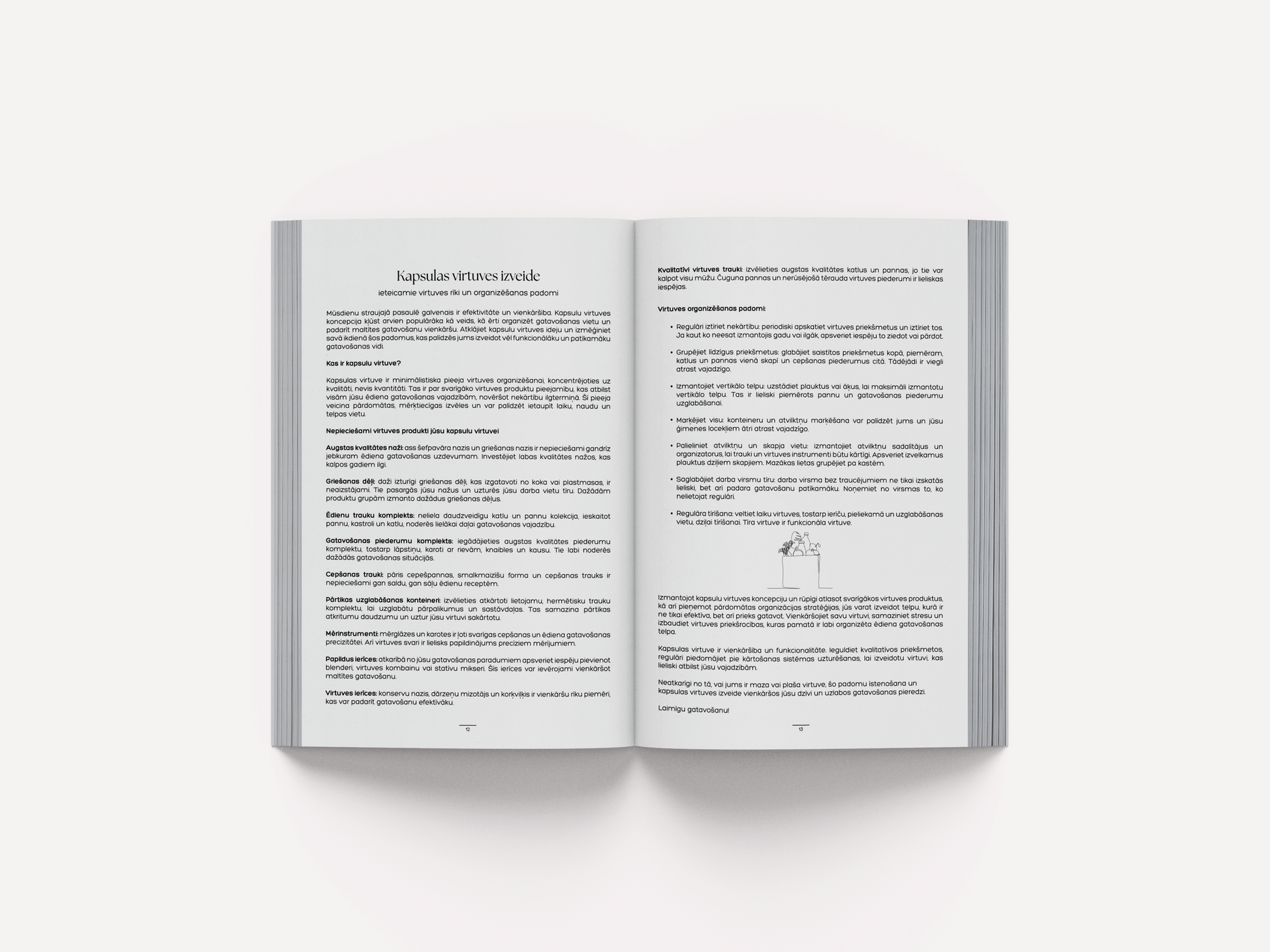 - Noderīgi virtuves padomi ar garšvielu ceļvedi, mērvienību tabulām, dārzeņu un graudaugu pagatavošanas padomiem, kapsulas virtuves un efektīvas organizēšanas ieteikumiem, galda etiķeti un vietu, kur pierakstīt savas svētku receptes