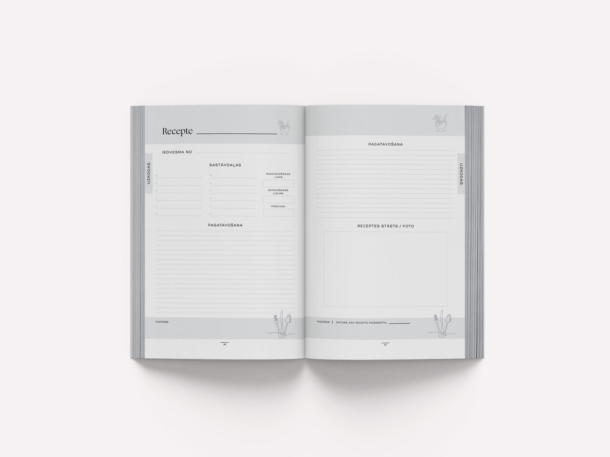 - Vieta 90 receptēm, kurām klāt var pievienot fotogrāfiju vai pierakstīt īpašu atmiņu stāstu